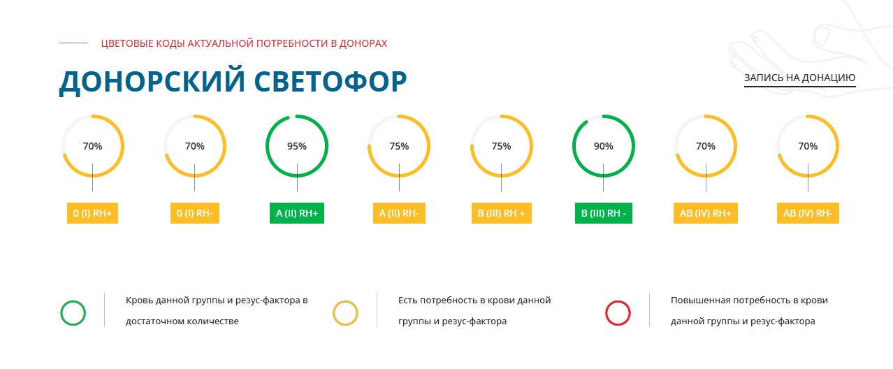 То есть, если, например, в больнице лежит или попал пациент, которому понадобилось переливание после травм, операций или в ходе лечения заболеваний. Тогда центр оповещает через светофор доноров, выставляя необходимую группу крови красным цветом, что нужно найти время и записаться на сдачу крови. Если кратко: светофор красный — значит есть потребность в определенных компонентах.