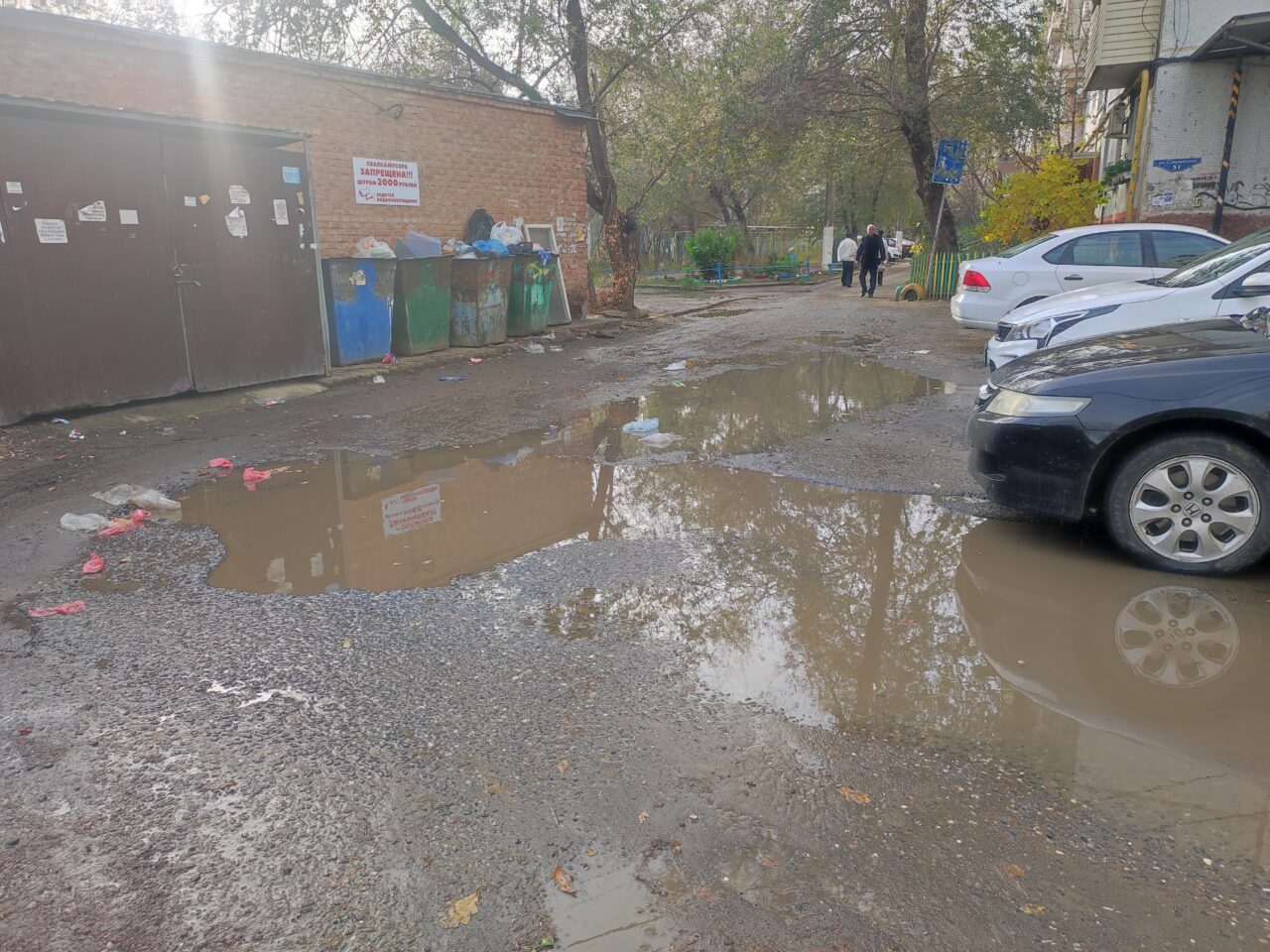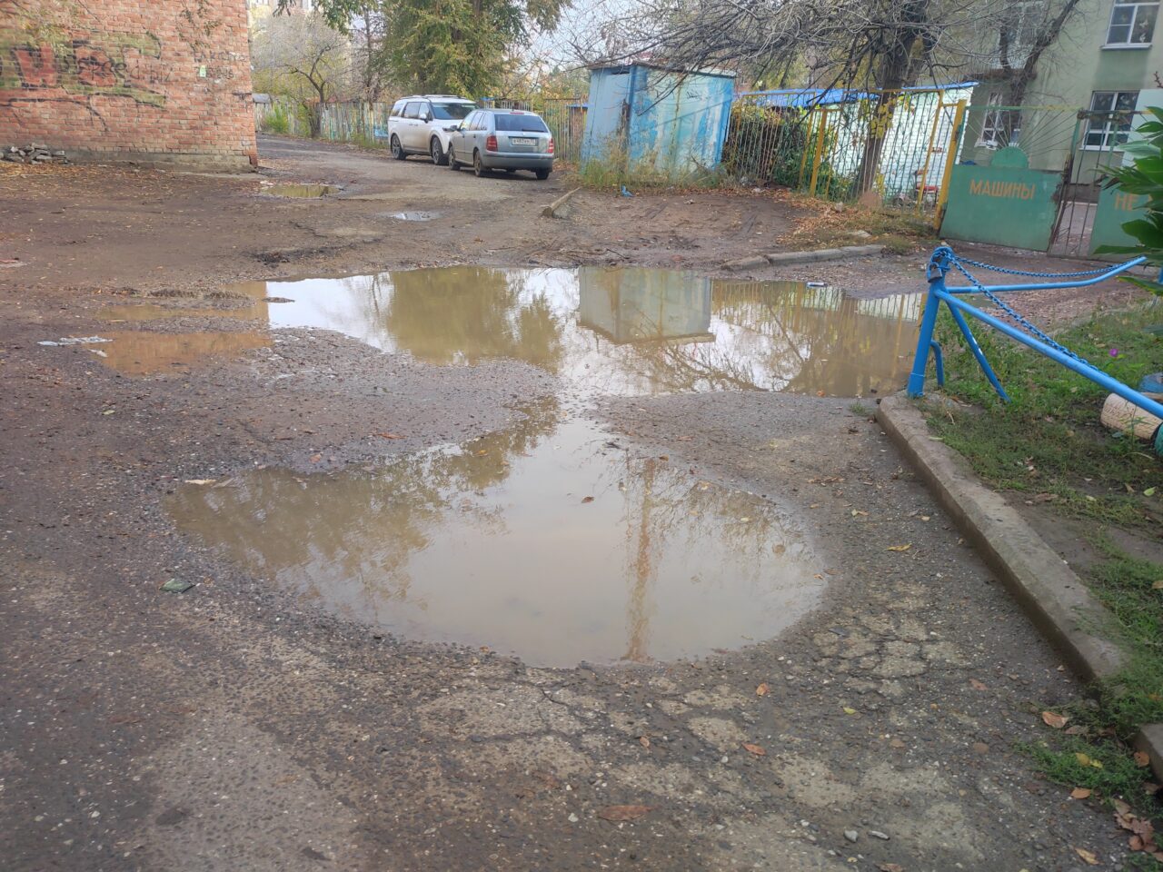 Во время дождя глубокие ямы заполняются водой и становятся угрозой для легковых автомобилей. В мороз и слякоть проблема усугубляется.