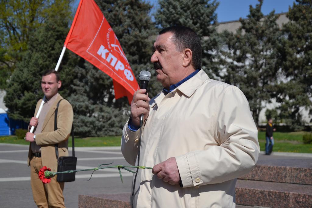 Перед собравшимися выступили первый секретарь Астраханского обкома, руководитель фракции КПРФ в Думе Астраханской области В.Ф. Вострецов; ветеран партии, член Бюро обкома Х.Т. Кутлалиев; секретарь обкома, депутат областной думы И.Н. Иванов; второй секретарь обкома, депутат Городской Думы Астрахани Х.А. Аитов, а также недавно вступивший в ряды КПРФ А.С. Гулевский-Трошин, которому на митинге был торжественно вручен партийный билет.