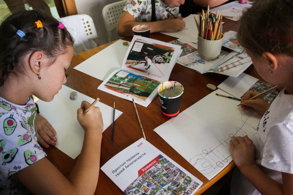 Вдохновившись темой, ребята рисовали железную дорогу, не забывая отражать в своих творческих работах тему профилактики травматизма.