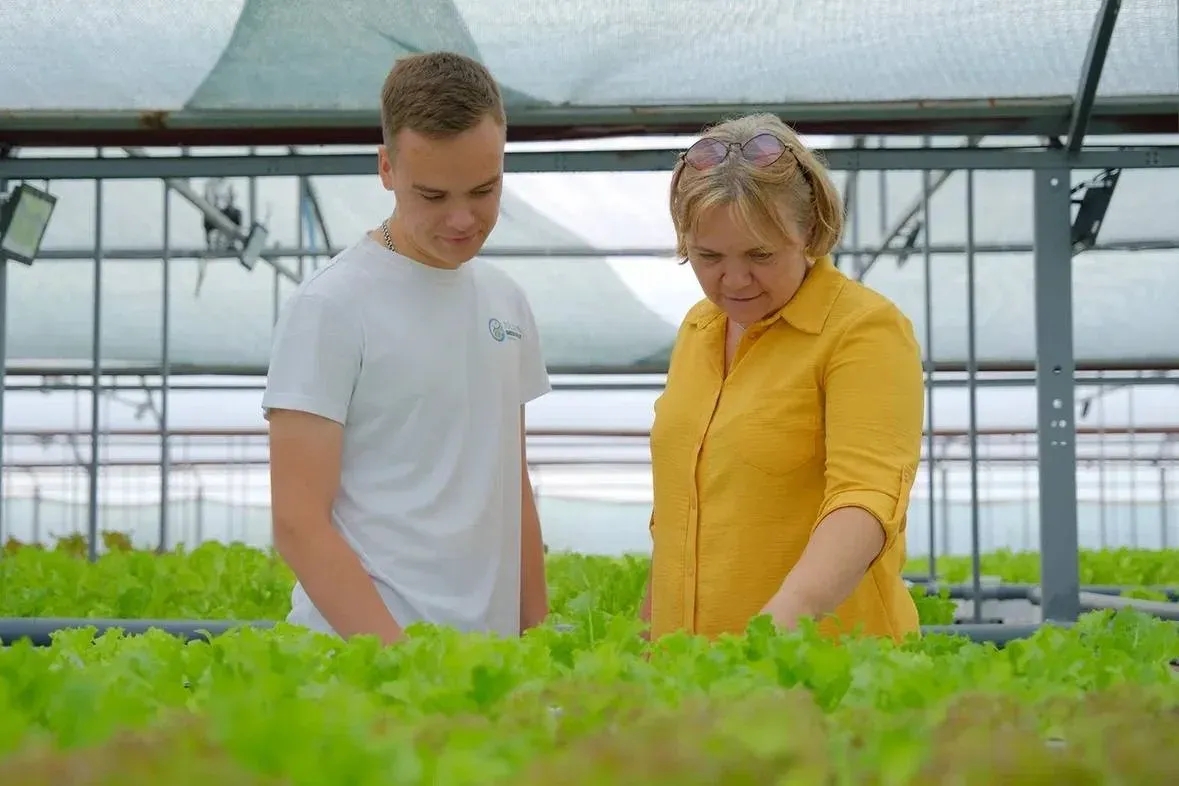 «Свое дело Никита развивает уже 8 лет. Идея родилась у него еще школе. Задумку поддержала мама. Вместе они открыли небольшое производство. Все началось с микрозелени на нескольких стеллажах. Теперь у Толстовых большая акваферма, где выращивают салаты и осетровую рыбу в замкнутой системе», — поделился подробностями о проекте Игорь Бабушкин.