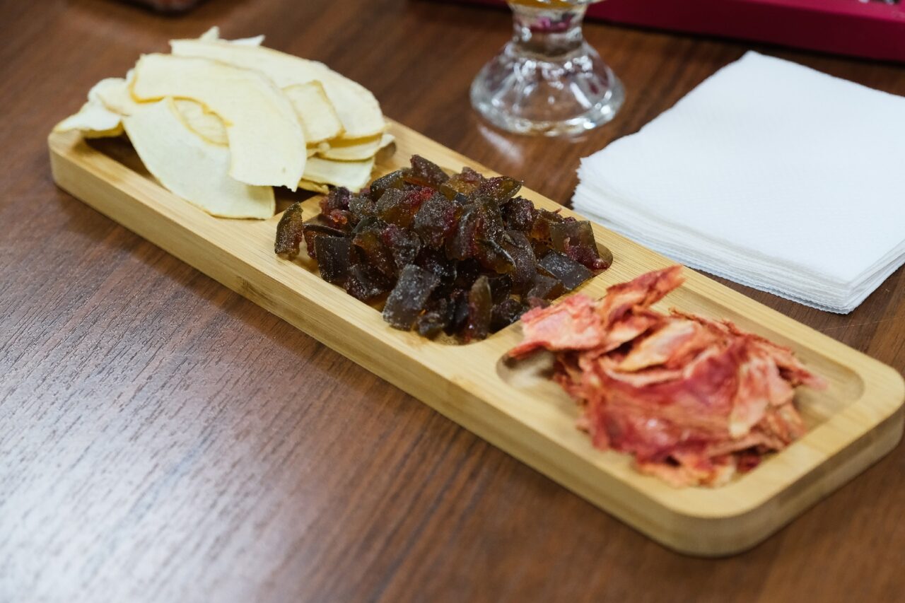 Сегодня в ассортименте компании – более 15 наименований продукции без консервантов, красителей и добавленного сахара, включая чипсы из бананов, яблок, кокоса, томатов, дыни и арбуза. Небольшое, но круглогодичное производство посетил депутат Госдумы РФ Ринат Аюпов.