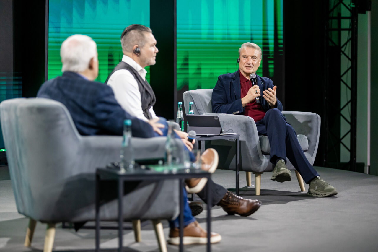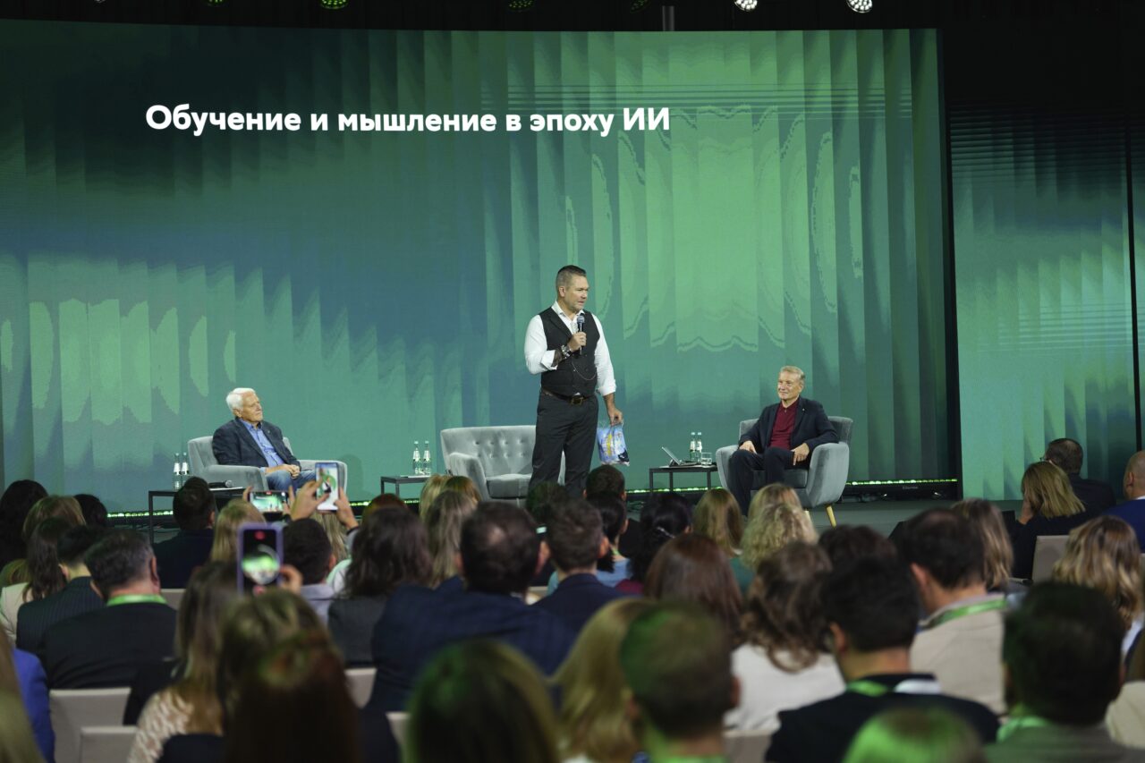 Конференцию открыл Герман Греф, вместе с нейрофизиологом Александром Капланом и экспертом по обучению Ником Шеклтон-Джонсом они обсудили фундаментальные изменения в человеческом мышлении в эпоху ИИ.