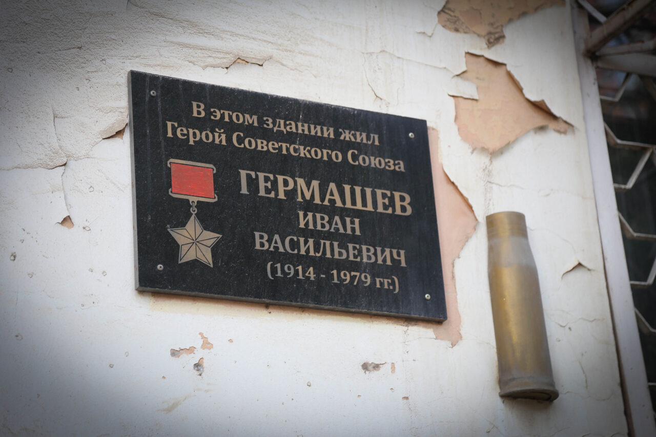 Среди звездных имен астраханских писателей, артистов, музыкантов, уникальных врачей и ярких общественных деятелей, увековеченных на мемориальных табличках, есть и имена людей, служивших верой и правдой Закону и Родине. На доме №8 по улице Коммунистической установлена памятная доска Герою Советского Союза Ивану Васильевичу Гермашеву.