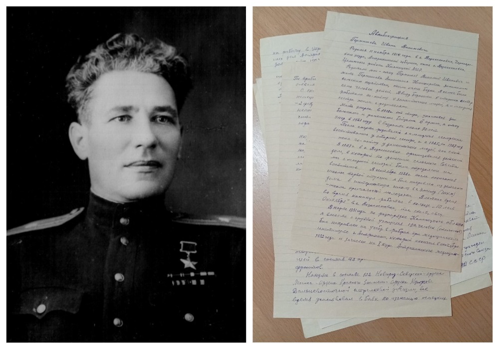 В семье сохранилось от руки написанная самим Иваном Васильевичем автобиография, в которой он буквально вскользь упоминает, что орден Ленина и Золотую Звезду Героя ему вручили за «геройский подвиг, связанный с выполнением боевого задания».