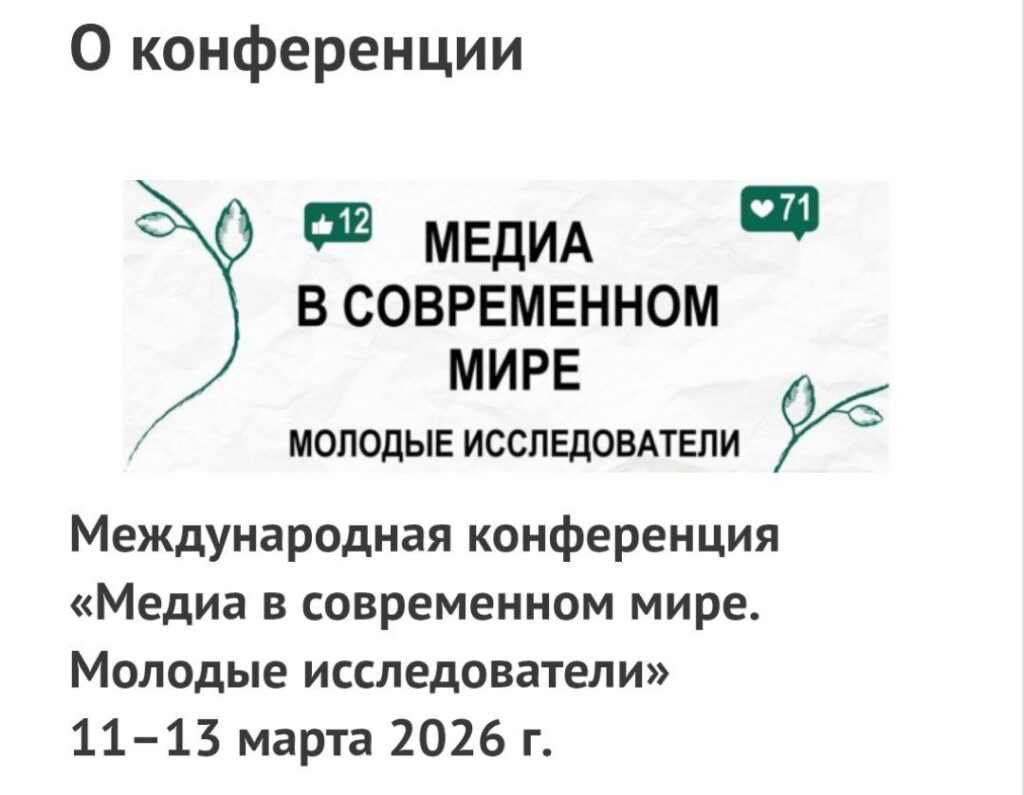 С 11 по 13 марта в Санкт-Петербургском государственном университете проходила международная конференция «Медиа в современном мире. Молодые исследователи» — одно из крупнейших научных событий для студентов, магистрантов и молодых практиков в сфере журналистики, рекламы и PR. Мероприятие проводится при поддержке факультета журналистики МГУ имени М. В. Ломоносова.