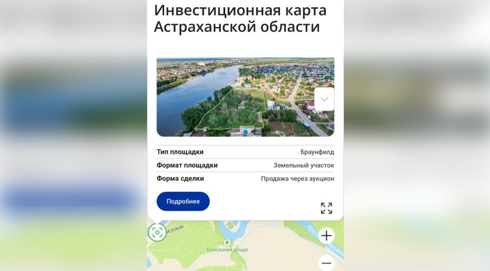 Глава региона напомнил, что цифровая платформа Инвесткарты создана в рамках нацпроекта «Эффективная и конкурентная экономика» и основана на данных регионов России, которые разработали в ходе внедрения регионального инвестиционного стандарта. Сервис позволяет сократить путь предпринимателя от возникновения идеи до запуска проекта. Сегодня на инвестиционной карте Астраханской области размещено более 200 площадок, каждая из которых имеет подробный паспорт с актуальной информацией от координат и фото до мер господдержки, которыми может воспользоваться инвестор.