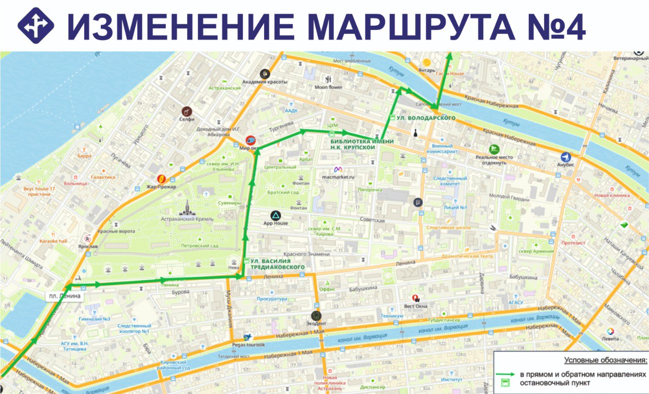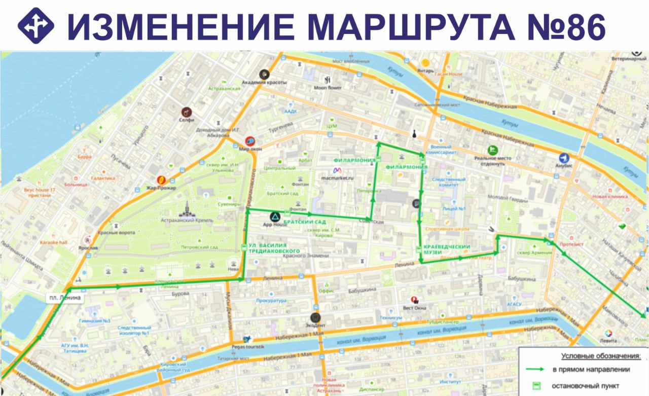 С понедельника, 11 ноября, в центре Астрахани перекрывают участок улицы Ленина (между Кирова и Володарского) для реконструкции ливневой канализации. Перекрытие будет длительное, так что автобусы, которые идут по этой улице, сменят свои маршруты.