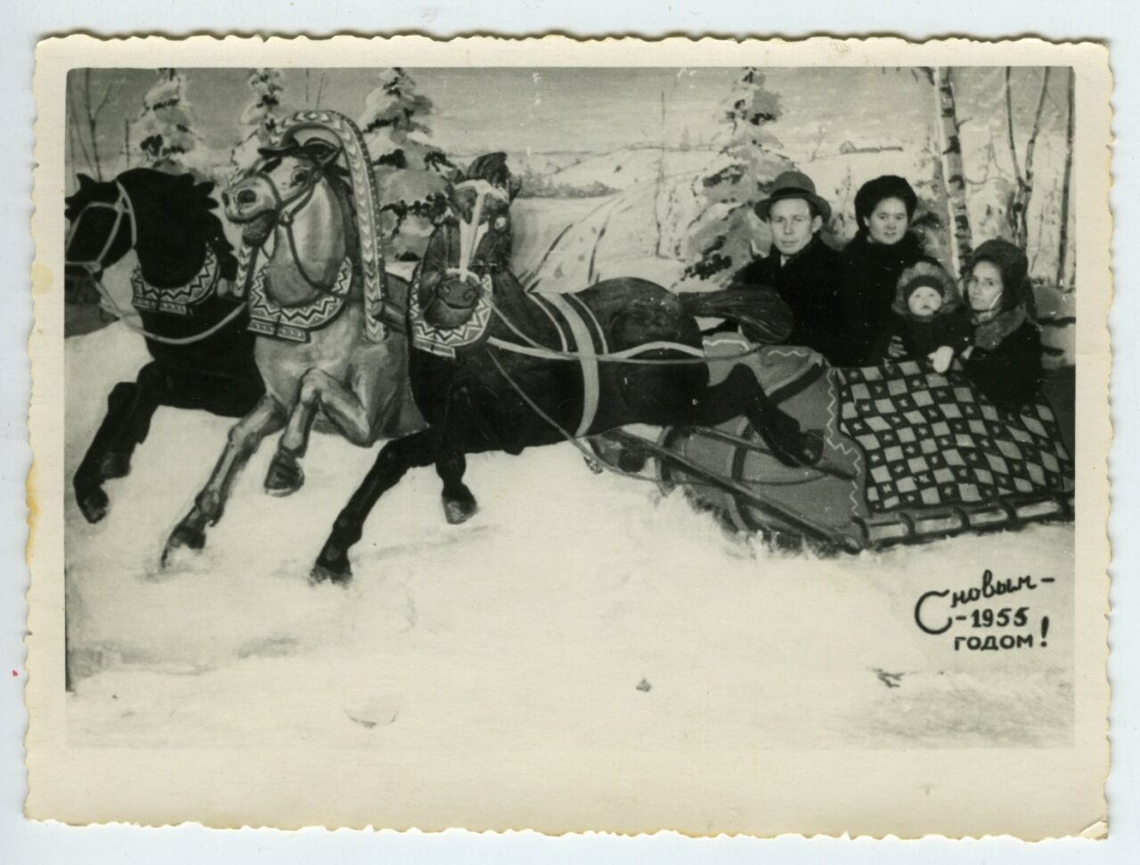 В этом ряду замечательно смотрятся дети. Обаяние детских мордашек не могли испортить никакие открытки. Ну и потом почему «испортить»? Мы же оцениваем эти фотографии как люди, которые обращаются к помощи ИИ для «оживления» старых снимков. А тогда ИИ не существовало, была просто жизнь. Но такие открытки долго оставались популярными.