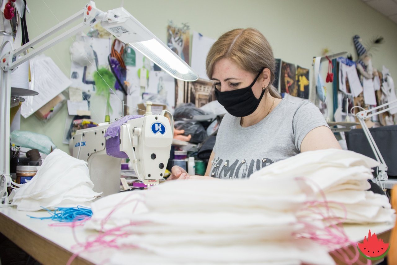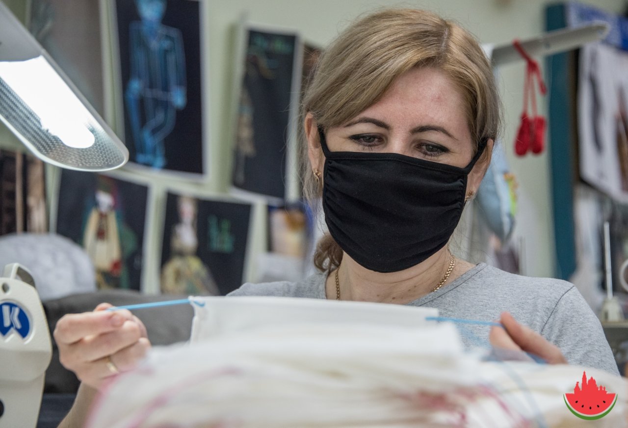 В этот понедельник более 600 изготовленных в театре масок передадут волонтерам из агентства по делам молодежи, которые помогают покупать продукты людям, оказавшимся в группе риска.