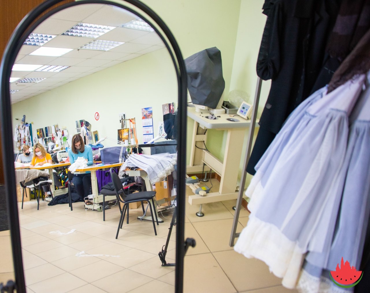В день театральные работники шьют по 150-200 масок. В цехах атмосфера позитивная. Швеи рады, что работают, потому что сидеть дома на самоизоляции без любимого дела им скучно. Заработная плата у них прежняя — руководство исполняет распоряжение президента Владимира Путина.