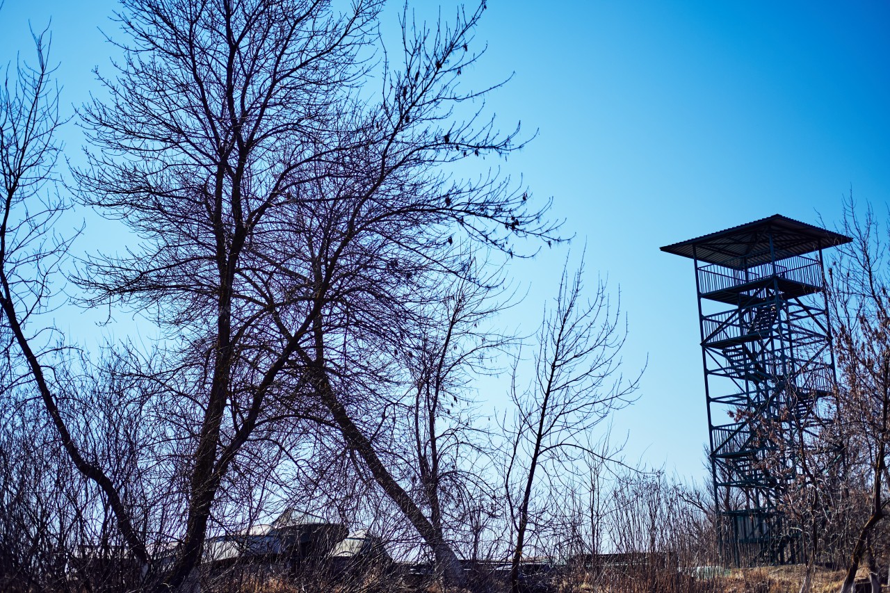 Начеку находятся все. Научное поселение замыкает огромная вышка, где дежурят исключительно сотрудницы заповедника. Они по несколько раз за день могут подниматься на высоту четырехэтажного дома. Нас сносит ветром, когда мы пытаемся залезть и сделать несколько снимков. Разговор переходит на повышенные тона, но и крики уносит в тростниковые поля. Дыма на горизонте нет.