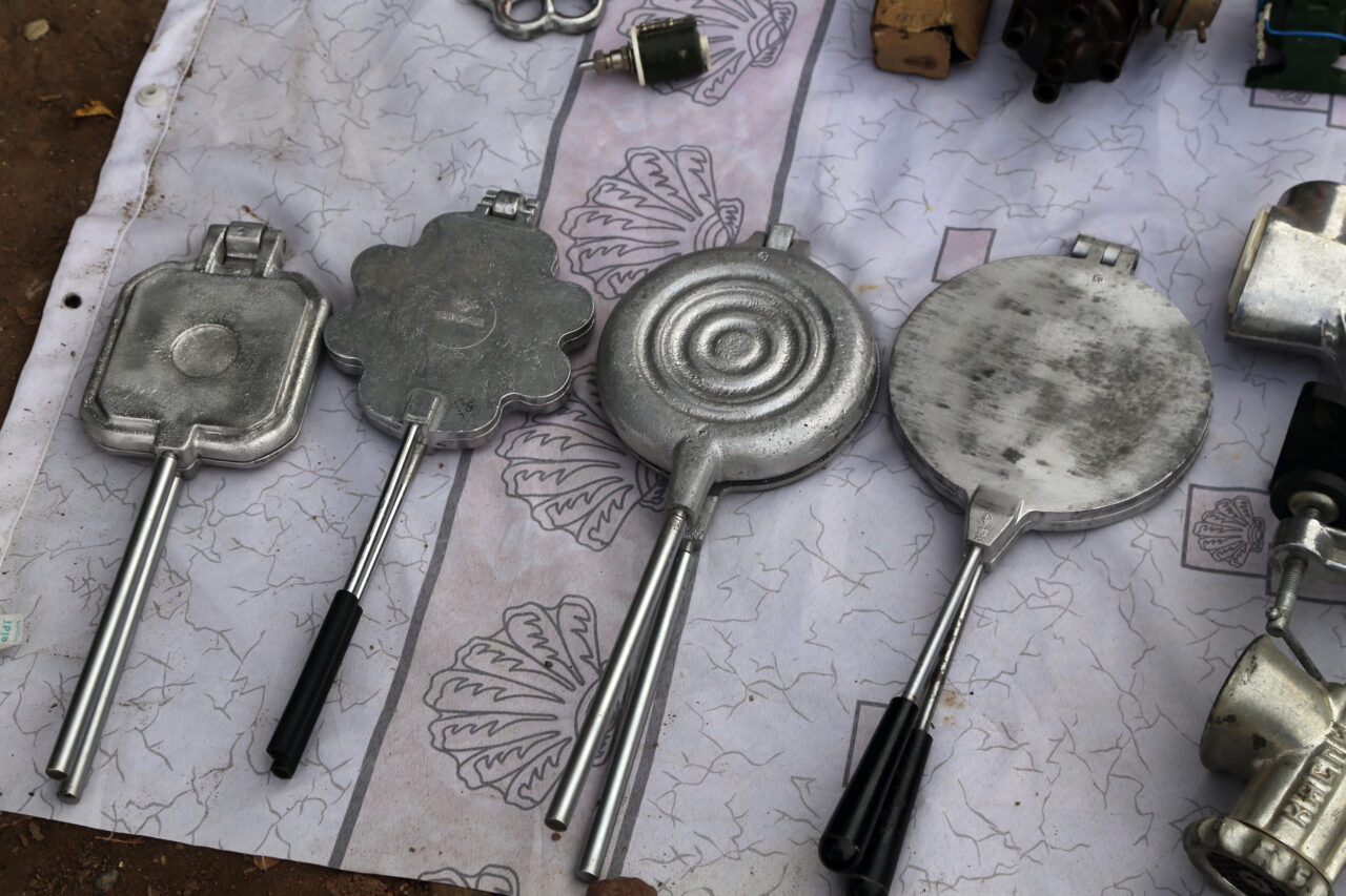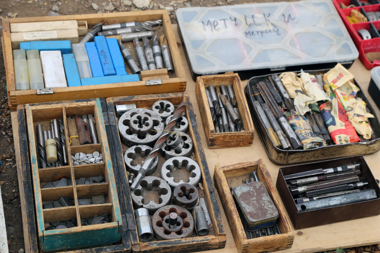 И из не такого далекого времени – тоже. Мы обратили внимание, как аккуратно, практически в образцовом порядке у одного мужчины уложены в коробках предлагаемые к продаже метчики и сверла. Прямо идеальная выкладка! Их хозяин когда-то работал на Астраханском заводе кузнечно-прессового оборудования. В 90-е годы продукцией выдавали зарплату. Табачная фабрика – сигаретами, пищекомбинат – печеньем, птицефабрики – курами. А уж как работник распорядится такой «зарплатой», администрацию не волновало. С курами и сигаретами, думаю, было проще. Инструменты дожили до нашего времени.