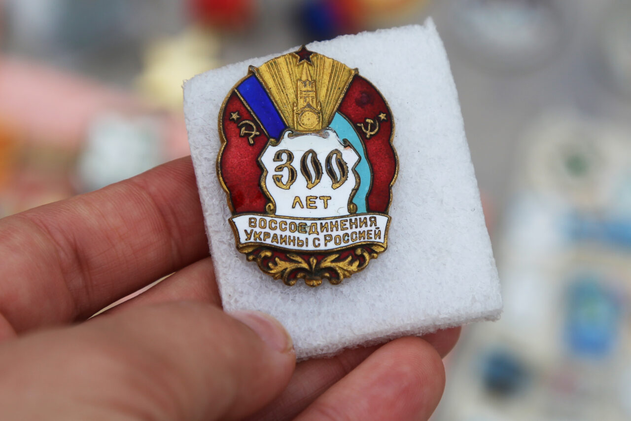 Среди представителей силовых ведомств, к слову, немало любителей старины и коллекционеров, наведываются сюда исключительно с этим интересом. И мы обнаружили среди значков немало любопытного с исторической точки зрения. Например, значок, выпущенный в честь 300-летия воссоединения России и Украины. Вот уж точно: дела давно минувших дней.