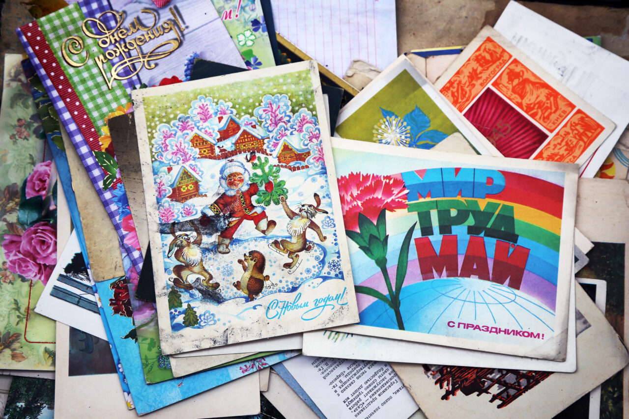 Ностальгическое настроение обеспечено тем, кто помнит игрушки советского детства, пластинки, книги, открытки, которые принято было отправлять почтой, не электронной, конечно, а опустив в почтовый ящик.
