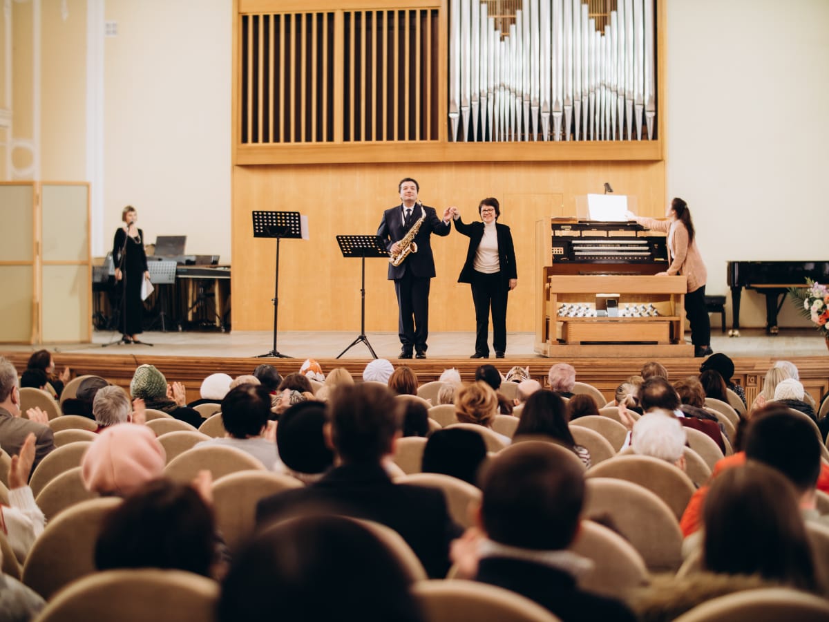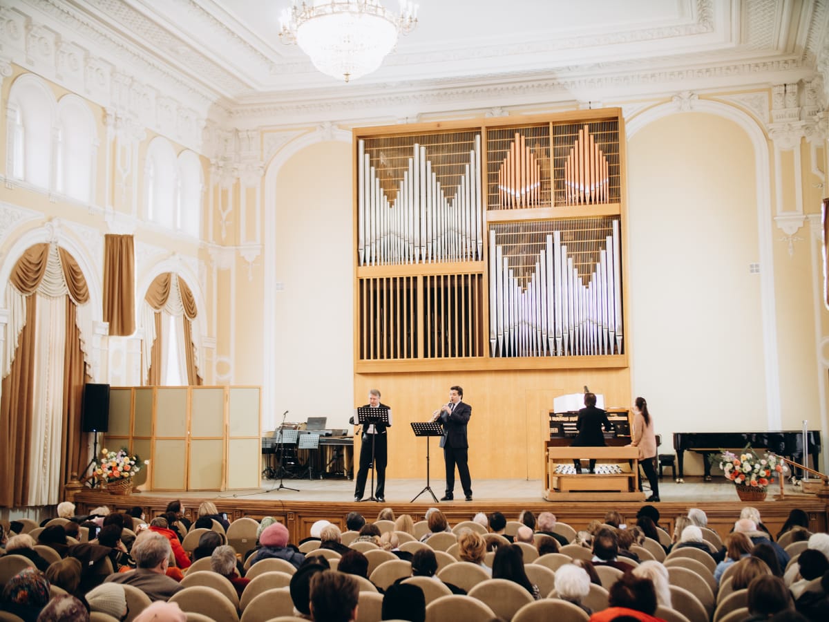Вчера на сцене Большого зала Астраханской консерватории выступали лауреат международных конкурсов Иван Паисов (гобой), лауреат международных конкурсов Леонид Друтин (саксофон), лауреат международных конкурсов, солистка Астраханского государственного театра оперы и балета Яна Павлова (сопрано) и Наталья Фомичева (орган).