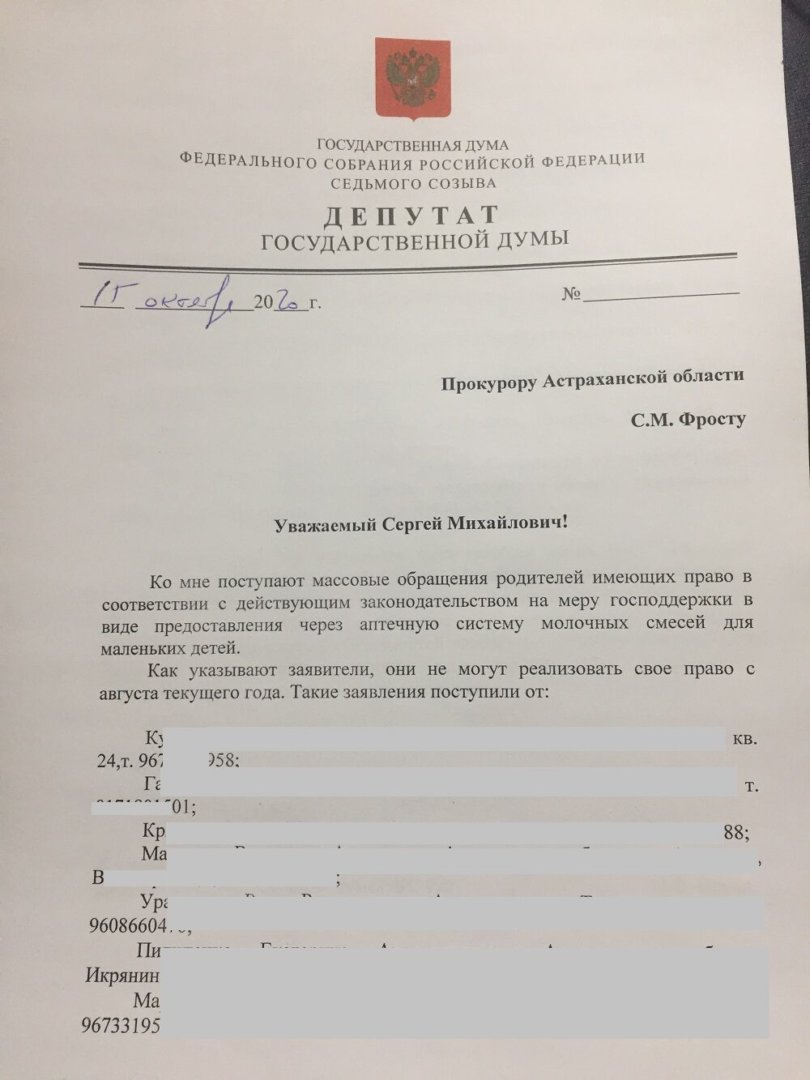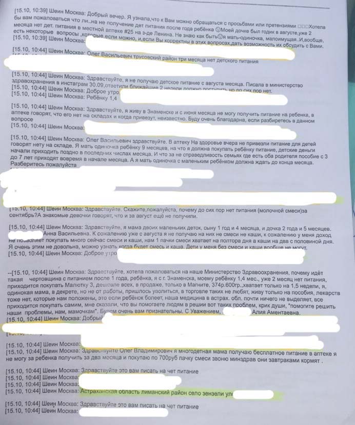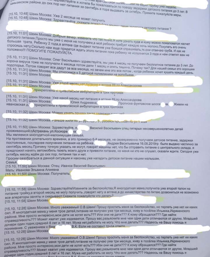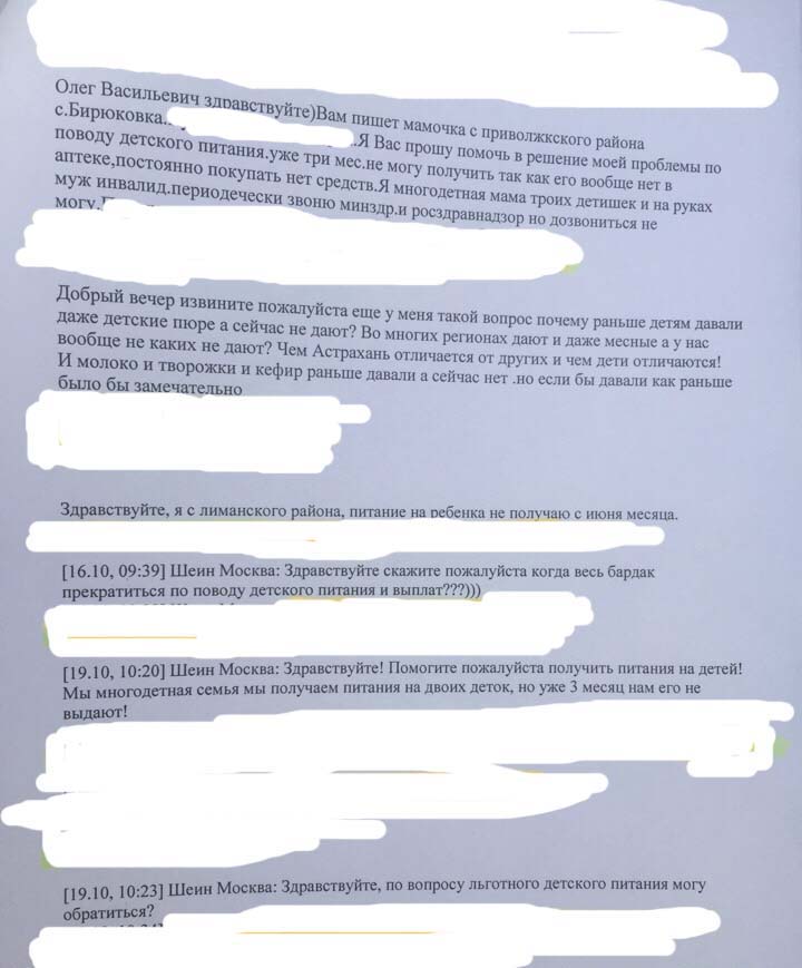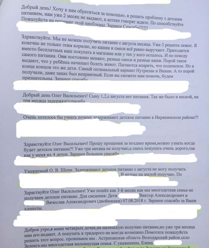 Причиной стали многочисленные жалобы людей на отсутствие в аптеках детского питания. Право на него имеют малообеспеченные семьи до достижения детьми трехлетнего возраста. Молочные смеси предоставляют аптеки, а закупает его Минздрав. Нет этого питания с августа. В пятницу Олег Шеин созвонился с вице-премьером правительства области Дмитрием Овчинниковым, проинформировав его о ситуации. Так же депутат скинул ему реестр из двадцати человек, которые лично обратились к парламентарию.