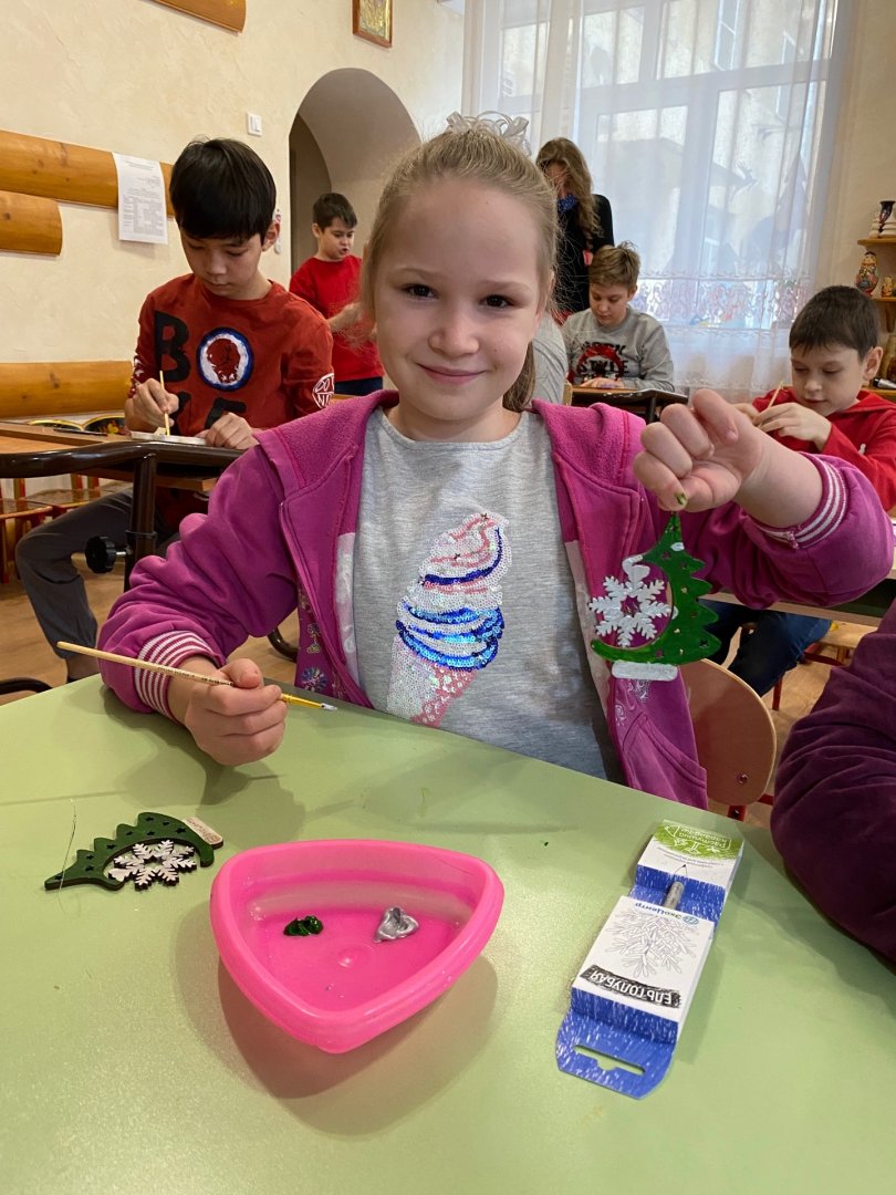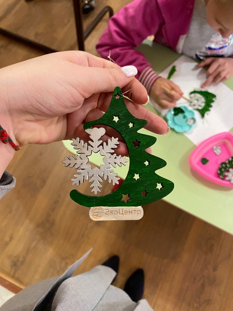 Деревянные елочки и снежинки в руках детишек «ожили» и заиграли разными красками. Ребятам рассказали, какие виды экологических игрушек существуют и в чем их польза для экологии. У каждого участника мастер-класса после увлекательного занятия появилась своя собственная экоелочка.