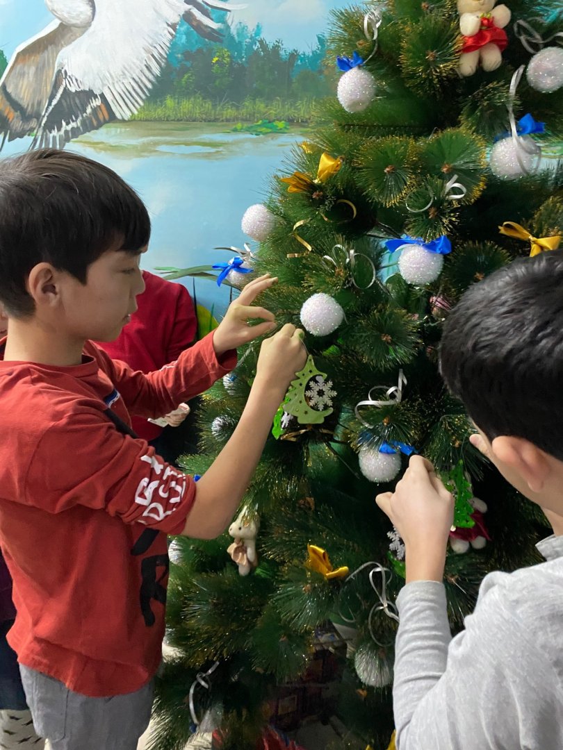 Часть эко-игрушек из дерева украсили главную елку в детском доме, а другие — детки повесили на елки в своих комнатах.