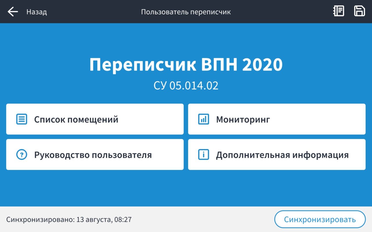 Для планшетов разработаны два мобильных приложения — для переписчика и для контролера. Переписчику доступен удобный картографический сервис, который позволяет легче ориентироваться на местности. В нем отображены все строения, где необходимо собрать сведения о жителях. Также доступен электронный переписной лист для внесения данных. Обеспечена автоматизация ряда функций по сбору информации, что значительно сократит время обработки данных. Встроенные механизмы проверки вводимых данных на основе заданных логических правил исключают ошибки и опечатки. Приложение позволяет контролировать количество переписанных в одной локации для снижения вероятности манипуляций, а также отслеживать динамику переписи в режиме онлайн. Благодаря централизованной инфраструктуре управления в случае утери или компрометации планшета он может быть дистанционно заблокирован, а данные удалены.