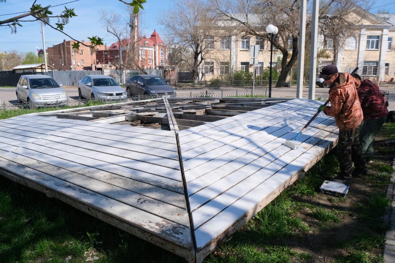 Покраска понтона под домик для лебедей. Фото: astrgorod.ru
