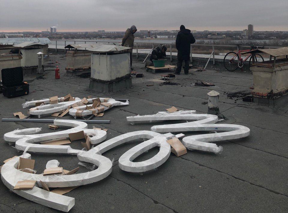 Необычная вывеска-инсталляция появится на крыше гостиницы «Азимут» (ранее «Лотос»). Авторами ее стали известный современный российский художник Владимир Абих и специалист по неоновым вывескам Роман Молодцев. Особенно интересна предыстория ее появления. Все началось в прошлом году, когда Владимир Абих приезжал в Астрахань.