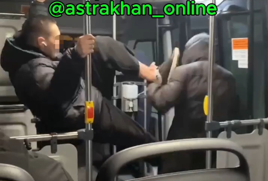 В астраханском автобусе произошел конфликт между двумя молодыми людьми. Когда как один из них выходил из транспорта на остановке, второй ударил его ногой в спину. В итоге парни подрались. О дорожном конфликте рассказали в группе «Астрахань online».