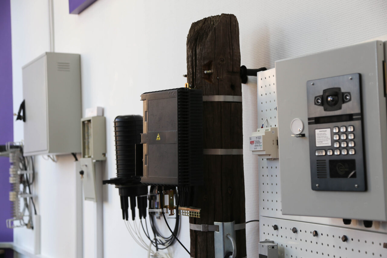 В офисе «Ростелекома» в Астрахани торжественно открылся новый учебный класс для подготовки технических специалистов телекоммуникационной отрасли. Кабинет, в котором куча проводов и даже столб с щитком, создали в рамках федерального проекта «Базовая станция», который помогает сблизить образование и реальные требования рынка. «Ростелеком» полностью оборудовал аудиторию: поставил мебель, ноутбуки, экран, зеленые чемоданы со сварочными аппаратами для сварки проводов и корпоративные материалы.