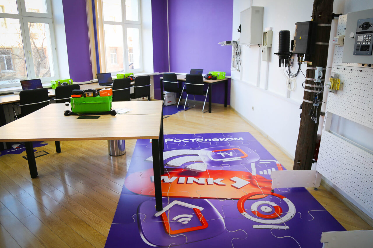 В офисе «Ростелекома» в Астрахани торжественно открылся новый учебный класс для подготовки технических специалистов телекоммуникационной отрасли. Кабинет, в котором куча проводов и даже столб с щитком, создали в рамках федерального проекта «Базовая станция», который помогает сблизить образование и реальные требования рынка. «Ростелеком» полностью оборудовал аудиторию: поставил мебель, ноутбуки, экран, зеленые чемоданы со сварочными аппаратами для сварки проводов и корпоративные материалы.