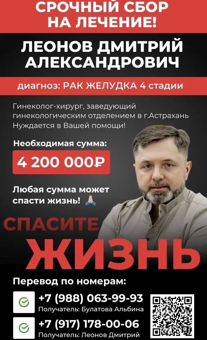 Многие месяцы астраханский врач борется с недугом, проходит лечение, держится и продолжает работать, спасая других. А семья, друзья, коллеги и даже пациенты, которые знают о диагнозе, поддерживают Дмитрия Леонова.