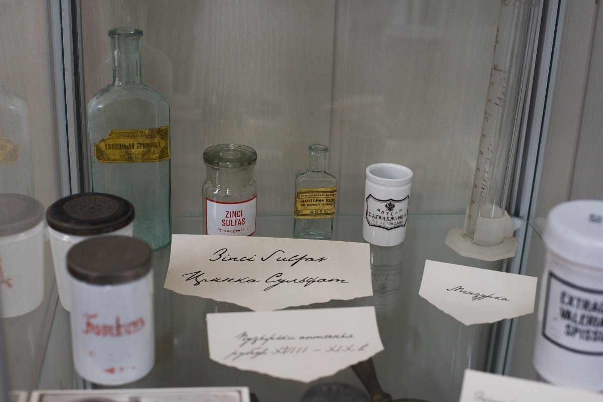 К слову, начало этот маленькому музею положили находки из подвала — их обнаружили, когда там тоже делали ремонт, осушая помещение. Первыми экспонатами стали найденные там аптечные бутылочки и мензурки. А дальше уже экспозиция прирастала и новыми находками, и различными предметами, которые жертвовали аптеке неравнодушные астраханцы. Тут много чего интересного.