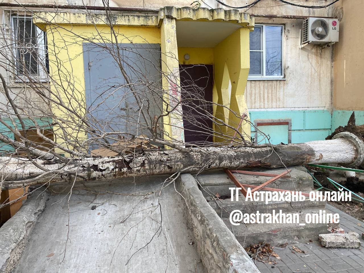 Тем временем не устояли перед стихией и деревья. На улице Минусинской возле подъезда многоэтажного дома упал огромный тополь. Как сообщают местные жители в группе «Астрахань online», они давно ждали, что его спилят, в итоге «дождались ветра». К счастью никто из людей не пострадал, дерево повредило только ступени.