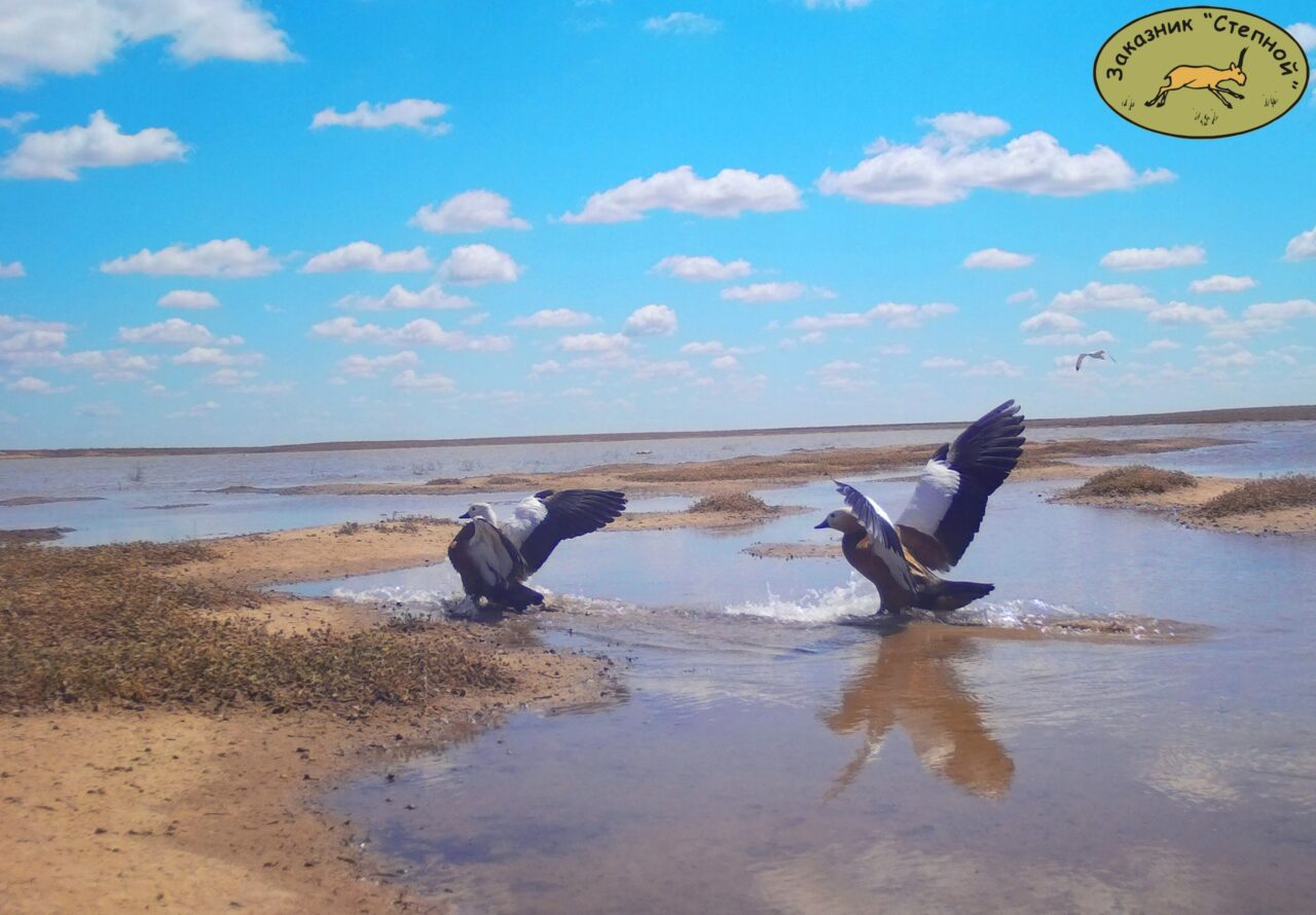 Для огари Астраханская область даже зимой может стать комфортным домом. Часть особей улетают южнее, но самые стойкие остаются тут. Просторы «Степного» вполне подходят для данного вида уток. В заказнике есть достаточное количество еды. А плавают воинственные огари в водоемах, которые подпитывают артезианские скважины (и служат водопоем для животных). Вода в них солоновато-горькая, зимой она полностью не замерзает, а потому место для плаванья у птиц есть.