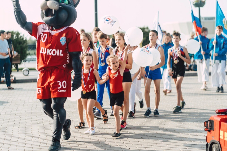 Чуть позже зрители и гости праздника могли наблюдать за парадом астраханских спортсменов, которые представляли свои спортивные школы и клубы. Представители каждого учреждения выходили на сцену, а ведущие рассказывали об успехах и именитых спортсменах данной спортшколы.