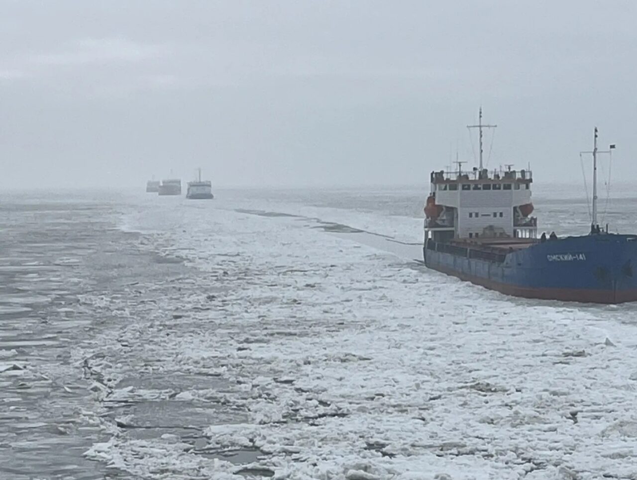 Конечно суда не стоят и не ждут улучшения природных условий. Проходить сквозь «ледниковый период» им помогают три ледокола «Капитан Букаев», «Капитан Чечкин» и «Капитан Мецайк» и 48 лоцманов. Прокладывать путь судам приходится не переставая.