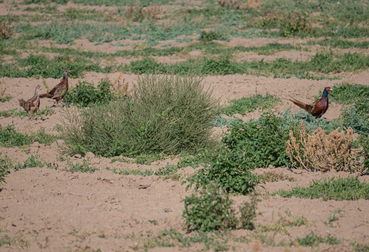 Наблюдала фотограф за красивыми царскими птицами — фазанами. Сидела Лилия Филоненко без маскировки, только замерла, чтобы не напугать их. Первым показался петух-фазан, огляделся, убедился, что врагов поблизости нет и позвал остальную стаю. Ходили они по дороге, занимались своими делами, но тут прилетел лунь. Лунь — птица хищная и фазаны об этом отлично знают, поэтому решили не геройствовать, а спрятаться.