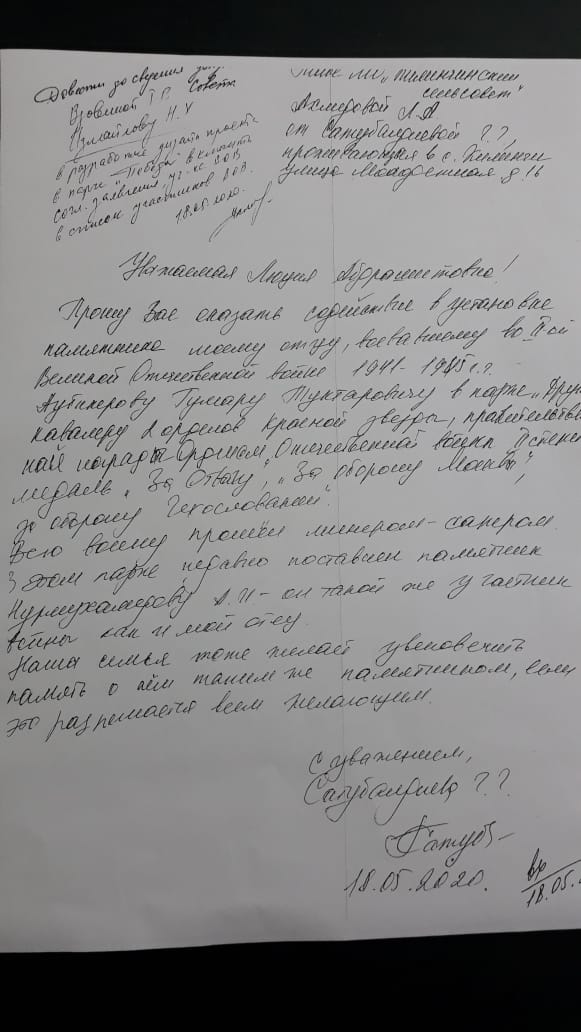 История эта началась около полугода назад. Инициативная группа во главе с жительницей села Гайши Измайловой при поддержке коммуниста, экс-кандидата в главы села Александра Ефимова решили увековечить память своего односельчанина Асхара Нурмухамедова, который трагически погиб на войне. Люди собирали деньги, заказали плиту, изготовили лавочки — всего было собрано порядка 78 000 рублей.