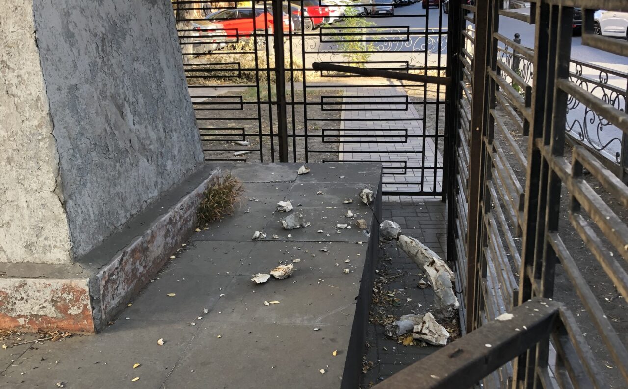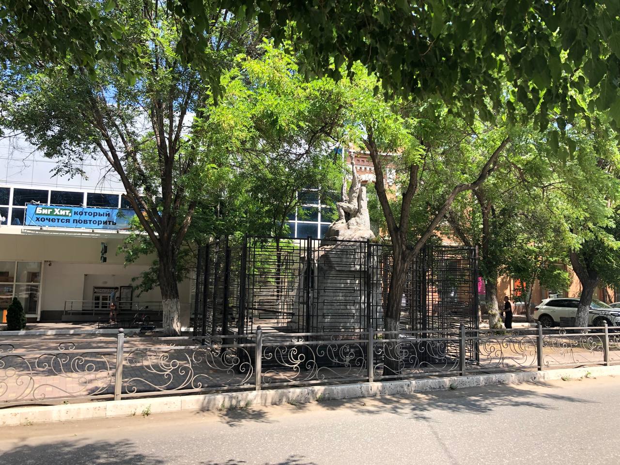 Памятник на могиле Александра Трусова в центре Астрахани начал сильно разрушаться. Внимание на это обратил автор телеграм-канала dvorast Валерий Маслов. Сейчас у памятника уже отвалилась поднятая раньше левая рука с факелом в ней. Теперь она лежит рядом.