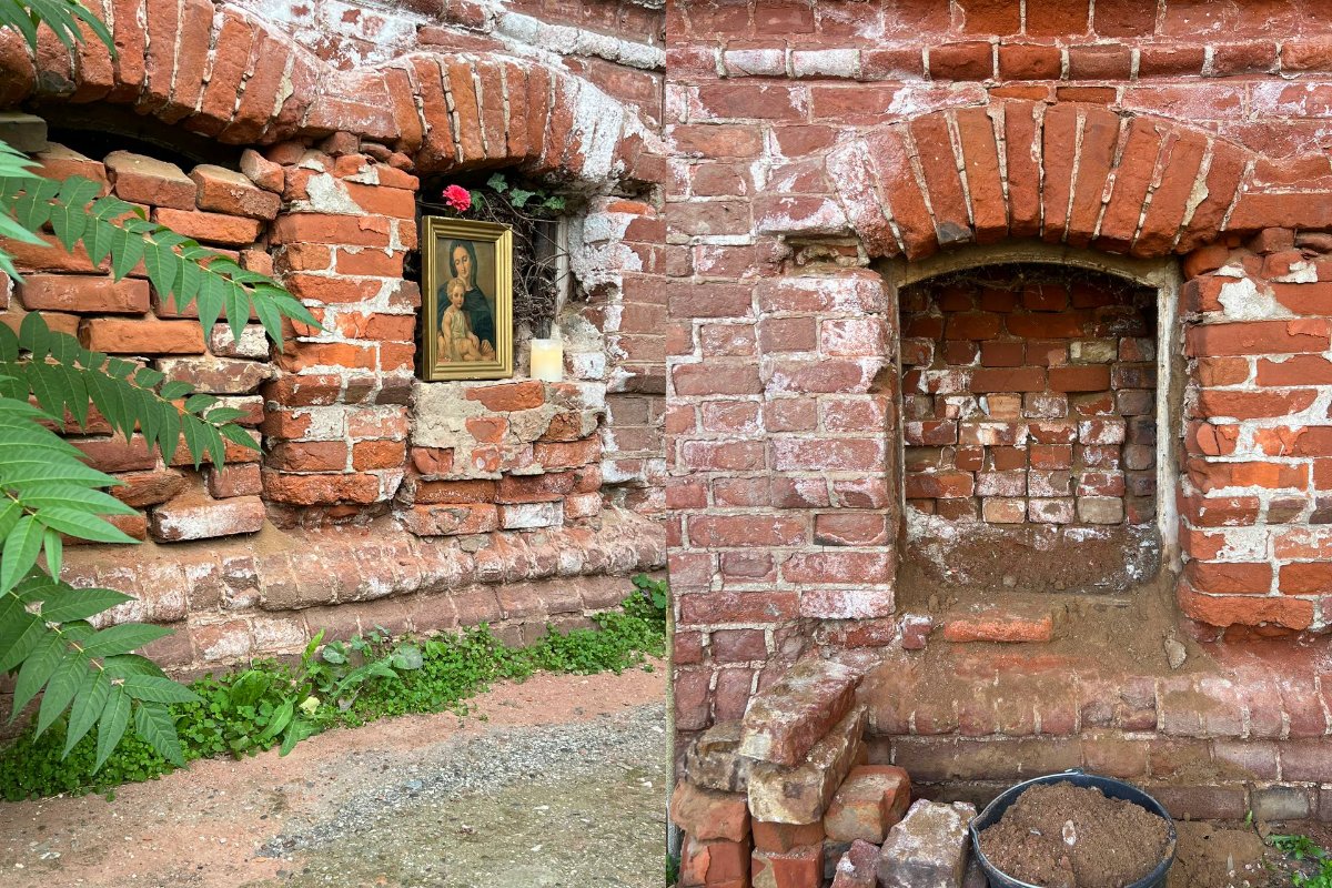 Кирпичная кладка окон цокольного этажа пастората начала сильно осыпаться: «Раствор, видимо, был плохого качества, будто сплошной песок». Поэтому Александра решила разобрать кирпичи, чтобы они дальше не падали. Внутри их ждало удивительное: в толще грунта были обрывки газет 1947 года.