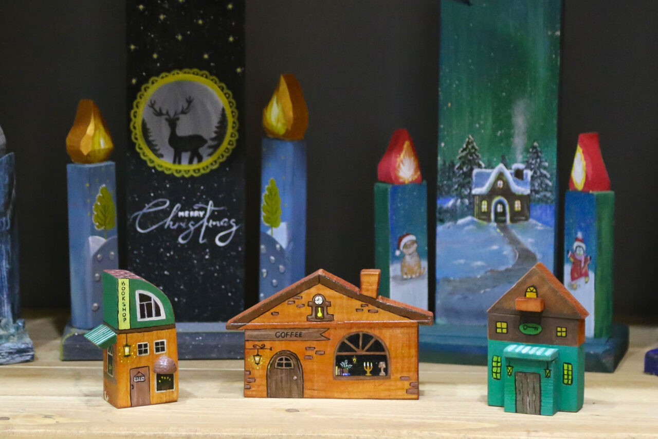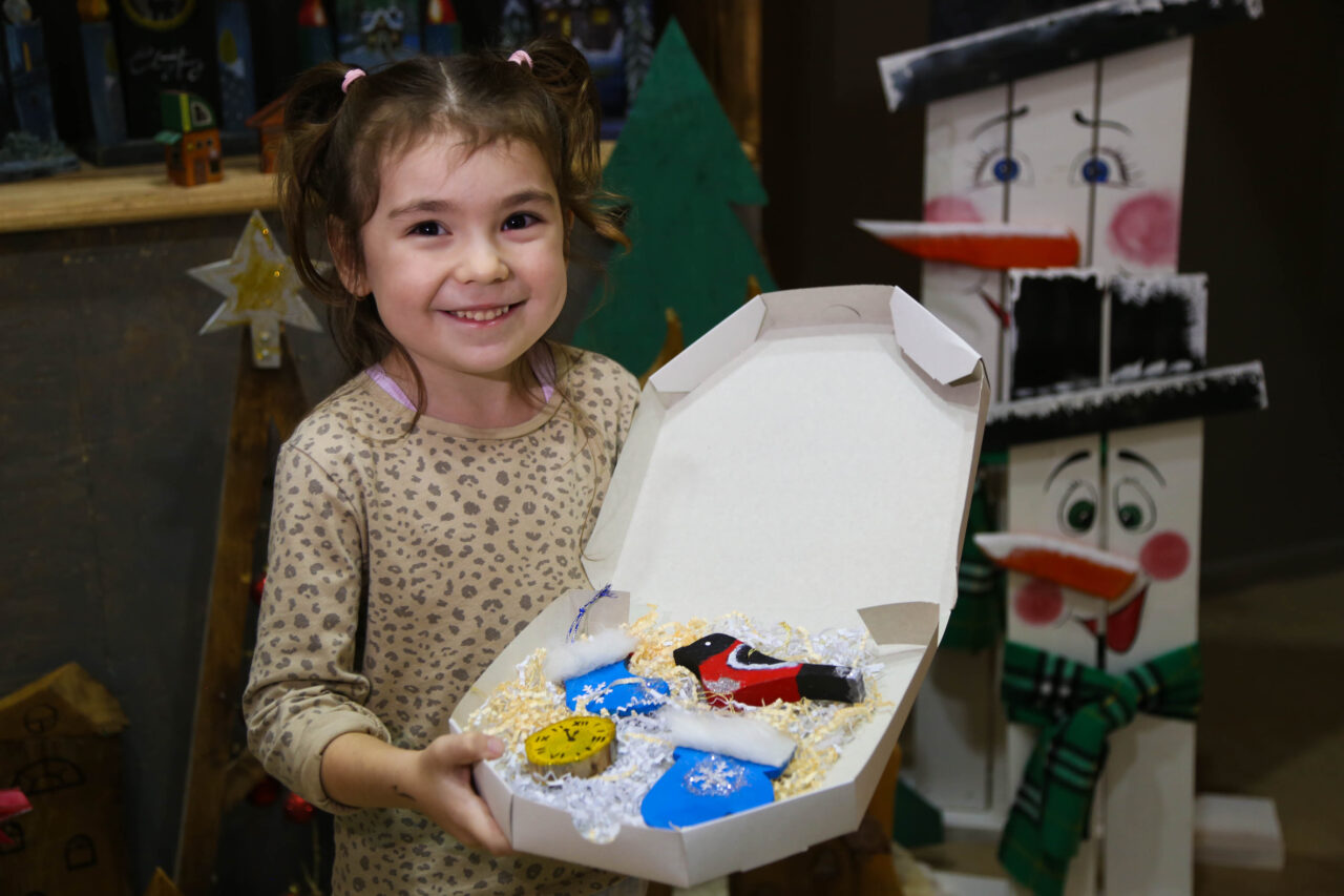 Новогодняя мастерская будет открыта и в январе. Если вы устанете от салатов, можно будет вместе со своими близкими взять в руки молоток и сделать деревянного снеговика или домик в снегу.