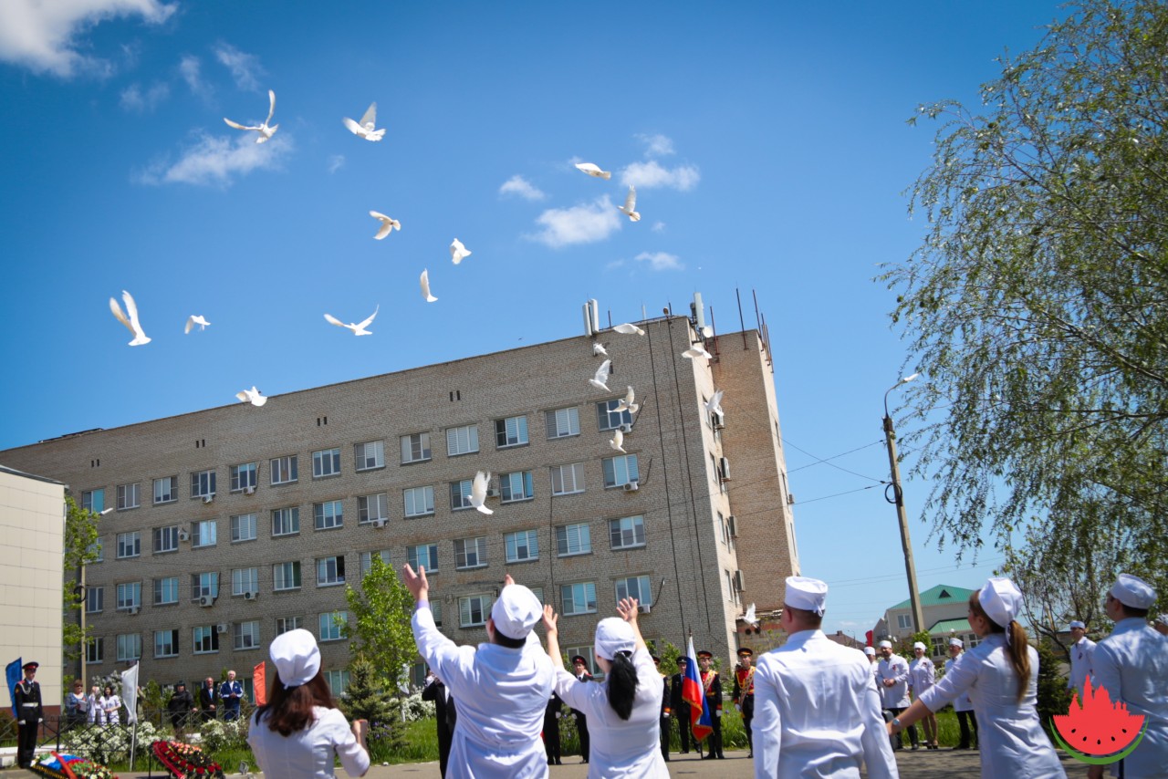 Перед гостями выступили курсанты Суворовского училища, астраханские исполнители песен и танцевально-спортивный клуб «Империя танца». Под занавес мероприятия сотрудники больницы символично выпустили в небо белых голубей, которые пролетели над памятником медикам, погибшим в Великой Отечественной войне.